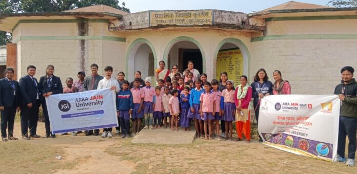 Jamshedpur : लौहनगरी जमशेदपुर के गम्हरिया स्थित अरका जैन विश्वविद्यालय (Arka Jain University) के अंग्रेजी विभाग एवं उन्नत भारत अभियान (UBA) सेल ने संयुक्त रूप से पूर्वी सिंहभूम के कुलडीहा गांव स्थित प्राथमिक विद्यालय में पाठ्य व खेल सामग्री का वितरण किया। इस अवसर पर आयोजित कार्यक्रम का मुख्य उद्देश्य ग्रामीण क्षेत्र के बच्चों में शिक्षा एवं शारीरिक विकास के प्रति जागरूकता लाना था। कार्यक्रम में अंग्रेजी के विद्यार्थियों के साथ यूबीए सेल के स्वयंसेवकों ने बढ़चढ़ कर हिस्सा लिया।