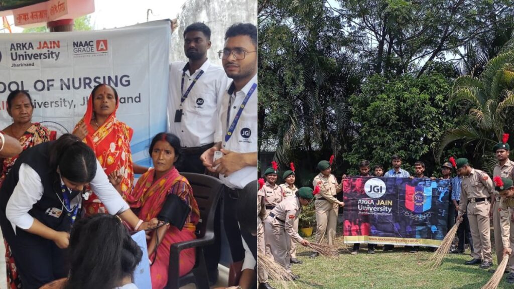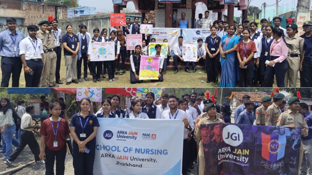 Jamshedpur AJU Students Initiative : विश्व स्वास्थ्य दिवस के अवसर पर अरका जैन विश्वविद्यालय के नर्सिंग स्कूल द्वारा सेंटर फॉर इंडियन नॉलेज सिस्टम (सीआईकेएस), एनसीसी यूनिट और उन्नत भारत अभियान (यूबीए) सेल के सहयोग से तथा एसएनएआई के साथ मिलकर मोहनपुर, गम्हरिया में एक भव्य जागरूकता कार्यक्रम का आयोजन किया गया। कार्यक्रम का विषय था— “स्वास्थ्य के लिए एकजुट हों और विज्ञान के साथ खड़े हों।”