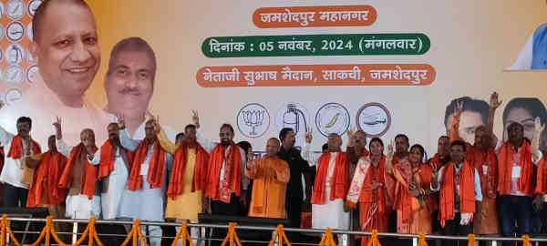 Yogi Adityanath, Jharkhand Assembly elections, NDA, JMM Congress alliance, Double Engine Government, Gogo Didi Yojana, Lakshmi Johar Yojana, Unemployment Allowance, Pradhan Mantri Awas Yojana, Jamshedpur elections, BJP campaign