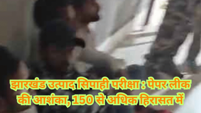 Ranchi exam paper leak : झारखंड (Jharkhand) की राजधानी रांची के तमाड़ (Tamar) थाना क्षेत्र में उत्पाद सिपाही परीक्षा (excise constable exam) के प्रश्नपत्र लीक होने की सूचना पर पुलिस ने कार्रवाई करते हुए 150 से अधिक युवकों को हिरासत में लिया है। सभी से गहन पूछताछ की जा रही है।